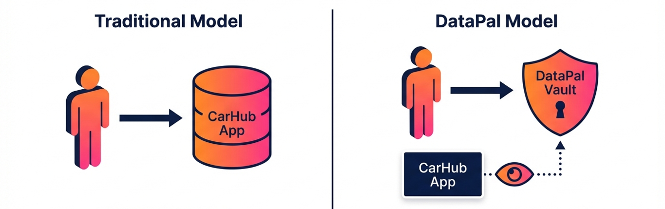 The app, which they call CarHub, is developed without the need for their usual user data security testing and validation as the user data will all be stored on, and accessed from, DataPal. The tools and guidance for their developers ensure that this is straightforward and reliable.